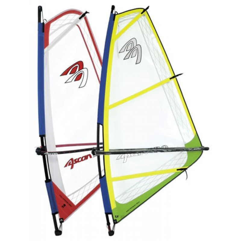 Ascans Pro Rigg ist ein hochwertiges Kinder-/ Jugendsegel und Damensegel (bis ca. 55 kg) aus verstärktem Monofilm mit einem stabileen Gabelbaum und einem zweiteiligem RDM-Epoxymast (ab 2,5 qm) bzw.