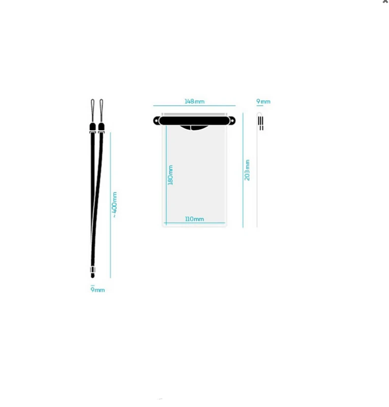 Magnetstreifen: TPU, Neodym Tasche: TPU Lanyard: Nylon Technische Daten Tasche außen: 148 x 203 x 9 mm Tasche innen: 110 x 180 mm Lanyard: 400 x 9 mm Gewicht: ca. 52 g