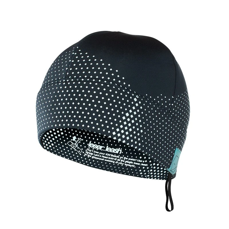 – Loser Leash: elastisches Sicherungs-Gummiband im Inneren der Beanie. Somit ist garantiert, dass man die ION Beanie auf dem Wasser nicht mehr verliert. Einfach am Reißverschlussband des Neoprenanzuges befestigen.