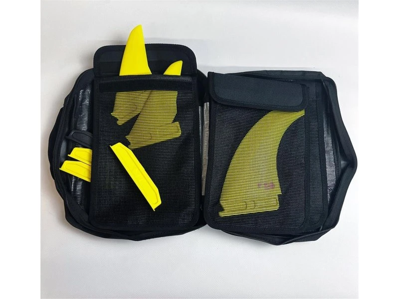K4 Finnentasche für Finnen und Zubehör. Insgesamt drei Trennfächer mit je 3 Taschen, sowie eine Reißverschlusstasche vorne und hinten (insgesamt 11 Taschen). Ein sauberer und sicherer Ort, um deine Finnen, Muttern, Bolzen und Schrauben zu verstauen.