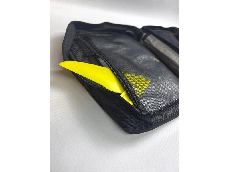 20 cm Finnen passen in die Fächer, maximale Kapazität der Tasche für einen 24 cm PB-Kopf.