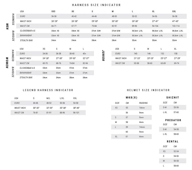 Die Gurte wurden etwas verbreitert, außerdem kommt in diesem Jahr der neue Ace Spreader Bar dazu. Die neue Bar hat eine weiche Polsterung auf der Innenseite um die Kraft gut zu verteilen. Die Curv Stealth Wings verhindern ein verdrehen der Bar nach oben. Der neue Verschluss macht das Öffnen noch einfacher, selbst mit kalten Händen kann es einfach mit einer Bewegung geöffnet werden.