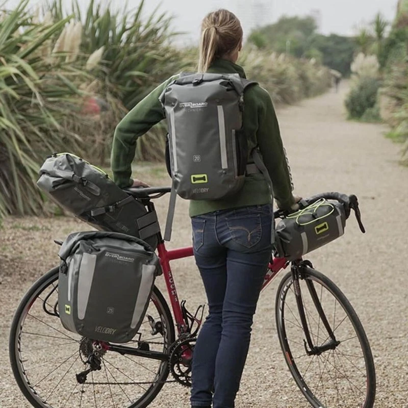 Mit der wasserdichten VeloDry Pannier Fahrradtasche mit 25 Litern die fest an Deinem Fahrrad befestigt ist kannst Du sicher sein, dass Deine Ausrüstung sicher und trocken verpackt ist, ganz gleich, was Du unternimmst.