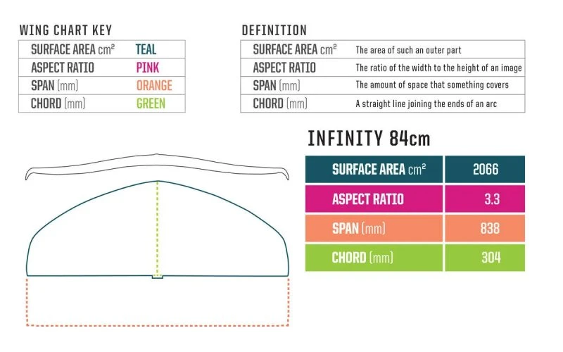 + Infinity 84, Fläche 2066 cm², Frontflügel für frühestes Abheben und langmögliches oben bleiben Geschwindigkeiten