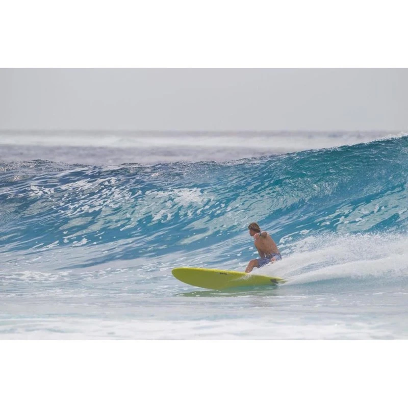 Das Medium Full Nose Design und der flache Mid-Entry versorgen das Board mit genügend Volumen für kleinere Tage mit schwächeren Wellen. Wenn es größer wird, reicht ein Schritt nach hinten und das Board morpht sich fast zum Shortboard. In Relation zu seiner tatsächlichen Länge fühlt sich das viel kürzer an und liefert Top Handling und Top Performance.